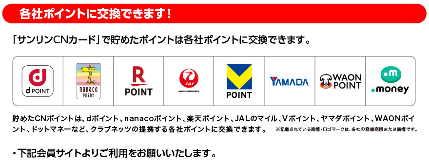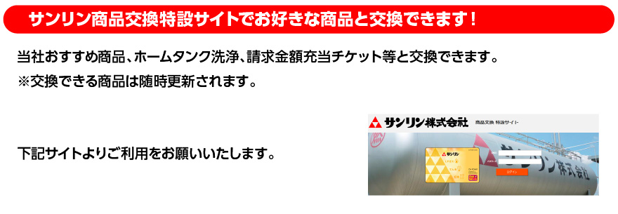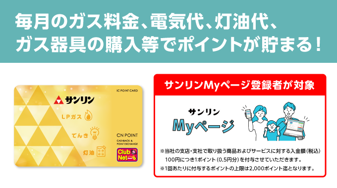 サンリンMyページにご登録後、ポイント会員申込手続きをしていただいたお客様が対象となります。