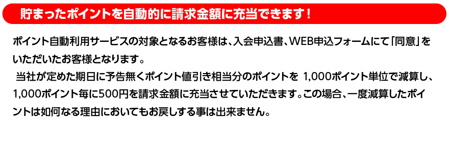 当社の支店・支社で取り扱う商品およびサービスに対する入金額(税込)100円につき1ポイント(0.5円分)を付与させていただきます。1回あたりに付与するポイントの上限は2,000ポイント迄となります。